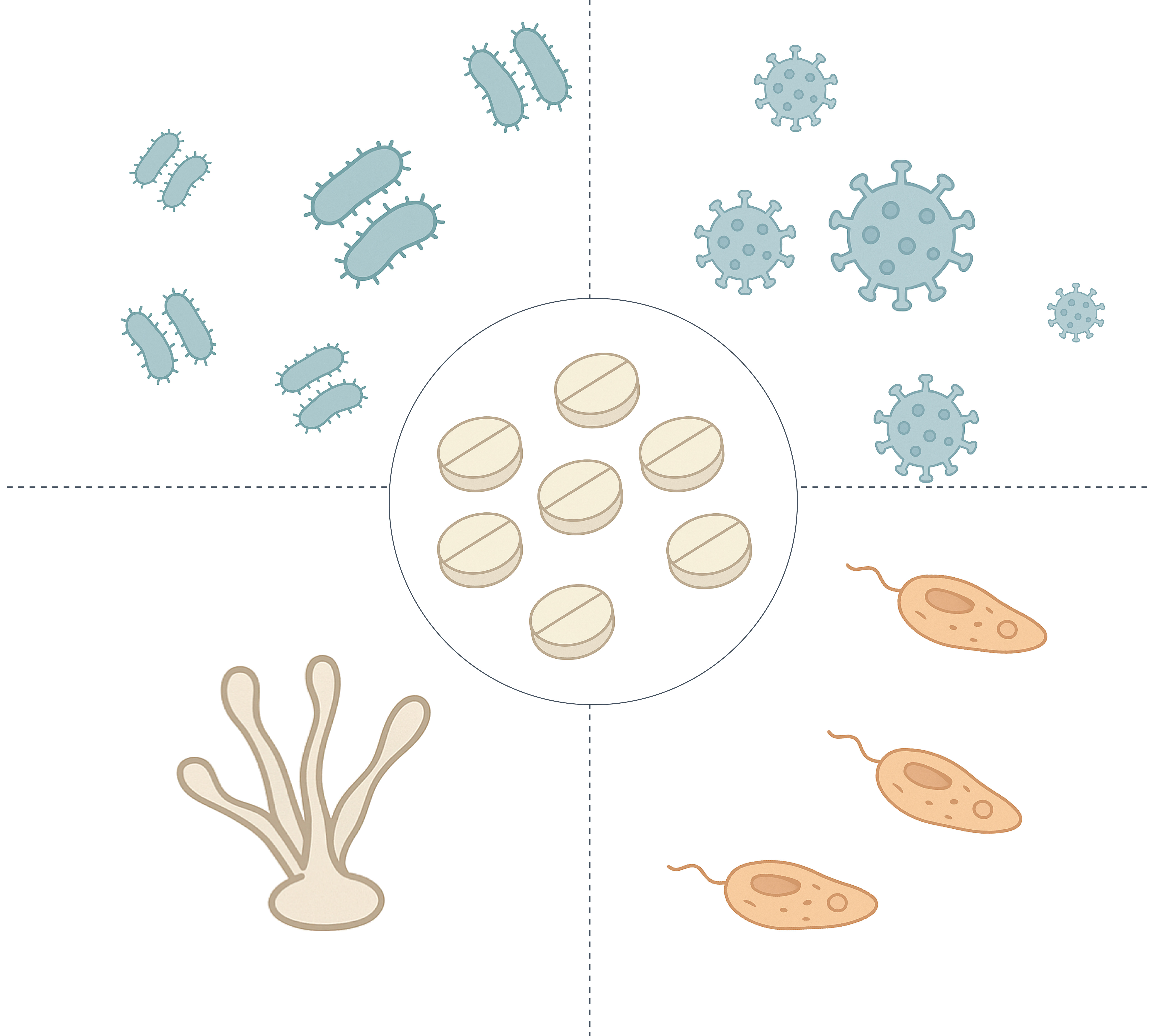 Antiprotozoals are drugs used to treat infections caused by protozoan parasites, including malaria, amebiasis, giardiasis, and trypanosomiasis. They act through a variety of mechanisms, including inhibition of nucleic acid synthesis, interference with mitochondrial function, and disruption of heme detoxification pathways in susceptible parasites.