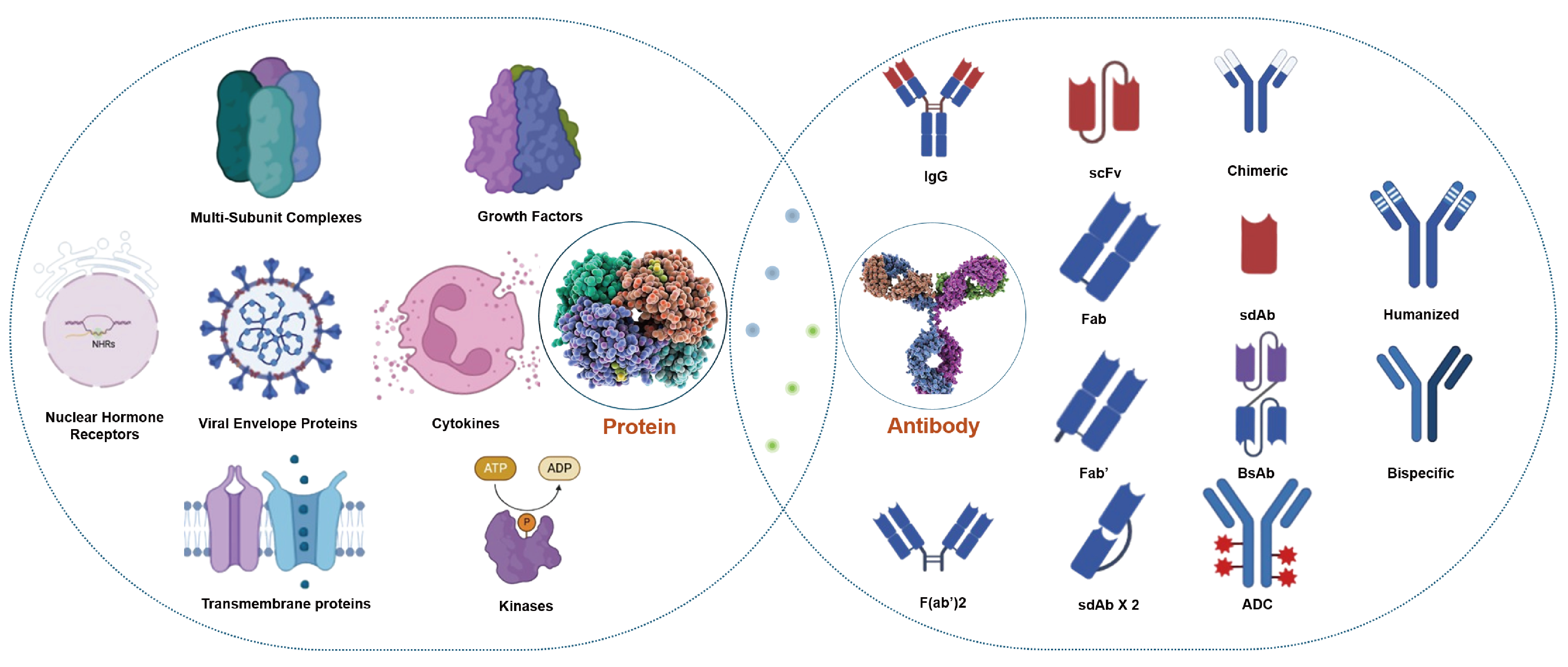 Antibody Inhibitors:IgGs, scFvs, VHHs, bispecific antibodies, and ADCs.