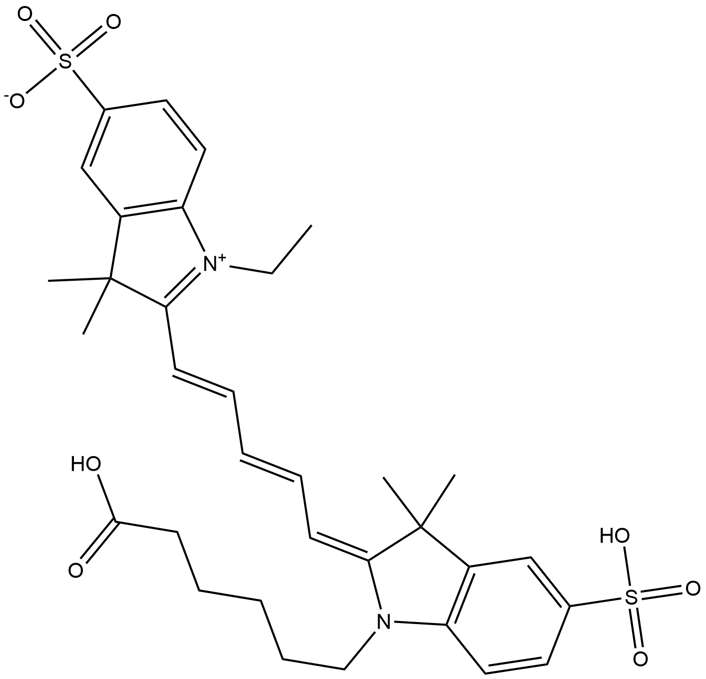 | Chemical Name | 2-((1E,3E)-5-((E)-1-(5-carboxypentyl)-3,3-dimethyl-5-sulfoindolin-2-ylidene)penta-1,3-dien-1-yl)-1-ethyl-3,3-dimethyl-3H-indol-1-ium-5-sulfonate |
