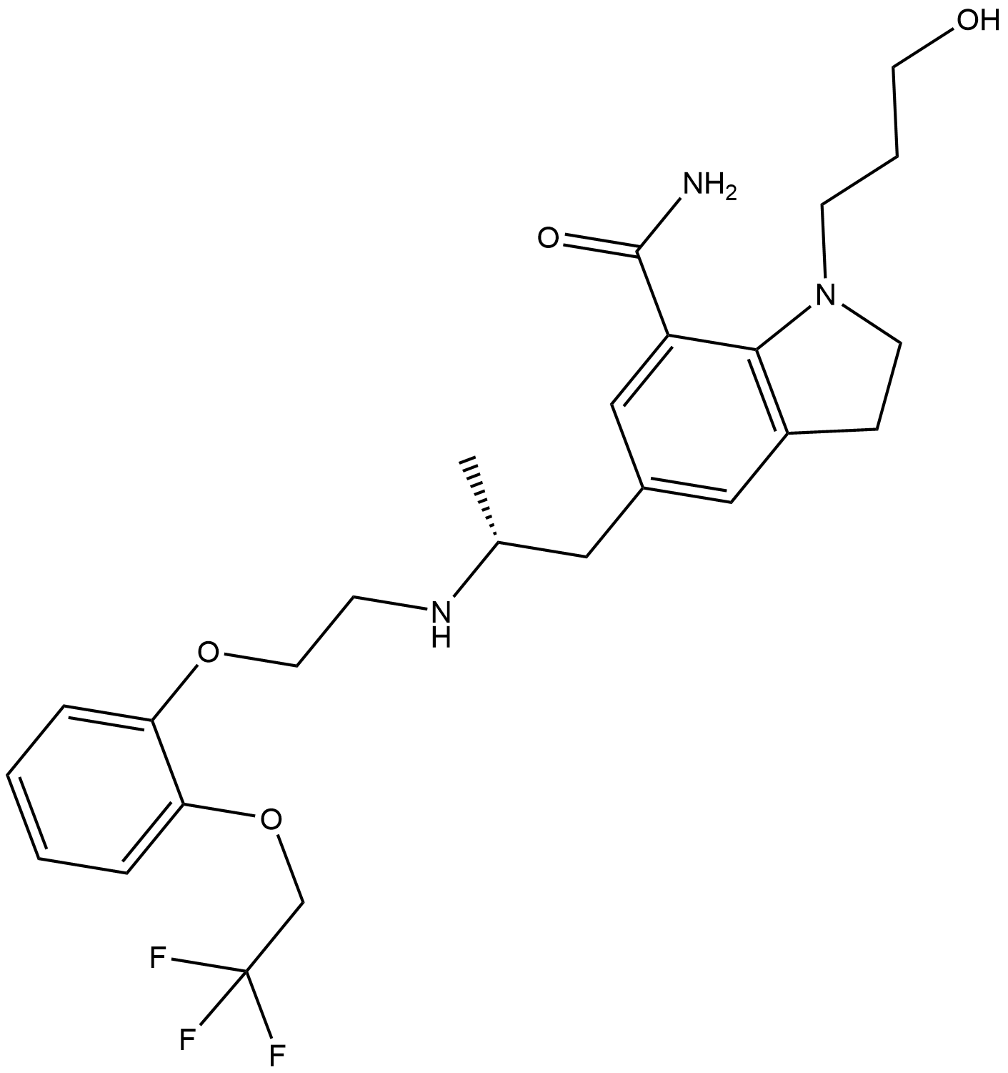 | Chemical Name | (R)-1-(3-hydroxypropyl)-5-(2-((2-(2-(2,2,2-trifluoroethoxy)phenoxy)ethyl)amino)propyl)indoline-7-carboxamide |