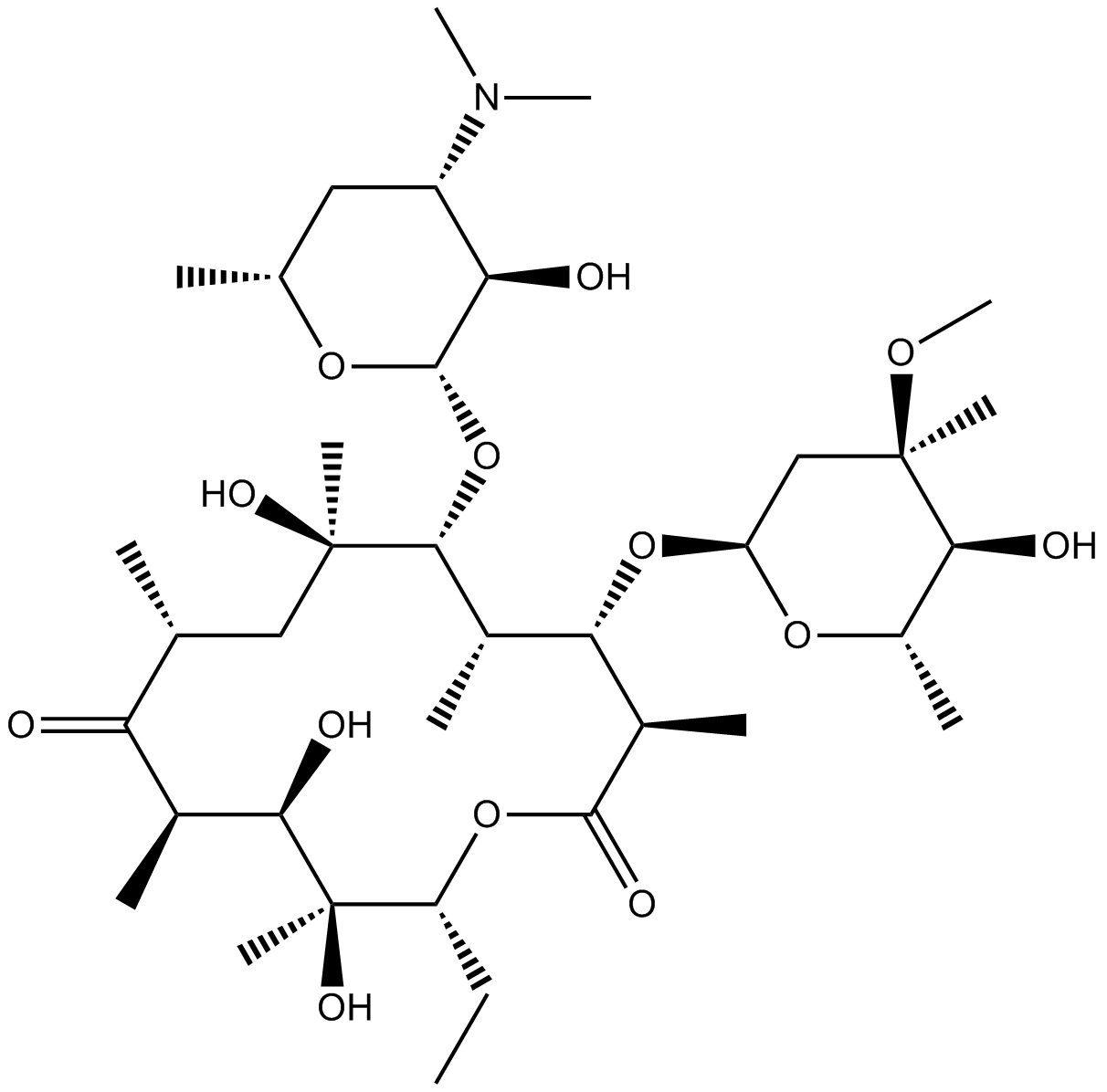 | Chemical Name | (3R,4S,5S,6R,7R,9R,11R,12R,13S,14R)-6-[(2S,3R,4S,6R)-4-(dimethylamino)-3-hydroxy-6-methyloxan-2-yl]oxy-14-ethyl-7,12,13-trihydroxy-4-[(2R,4R,5S,6S)-5-hydroxy-4-methoxy-4,6-dimethyloxan-2-yl]oxy-3,5,7,9,11,13-hexamethyl-oxacyclotetradecane-2,10-dione |