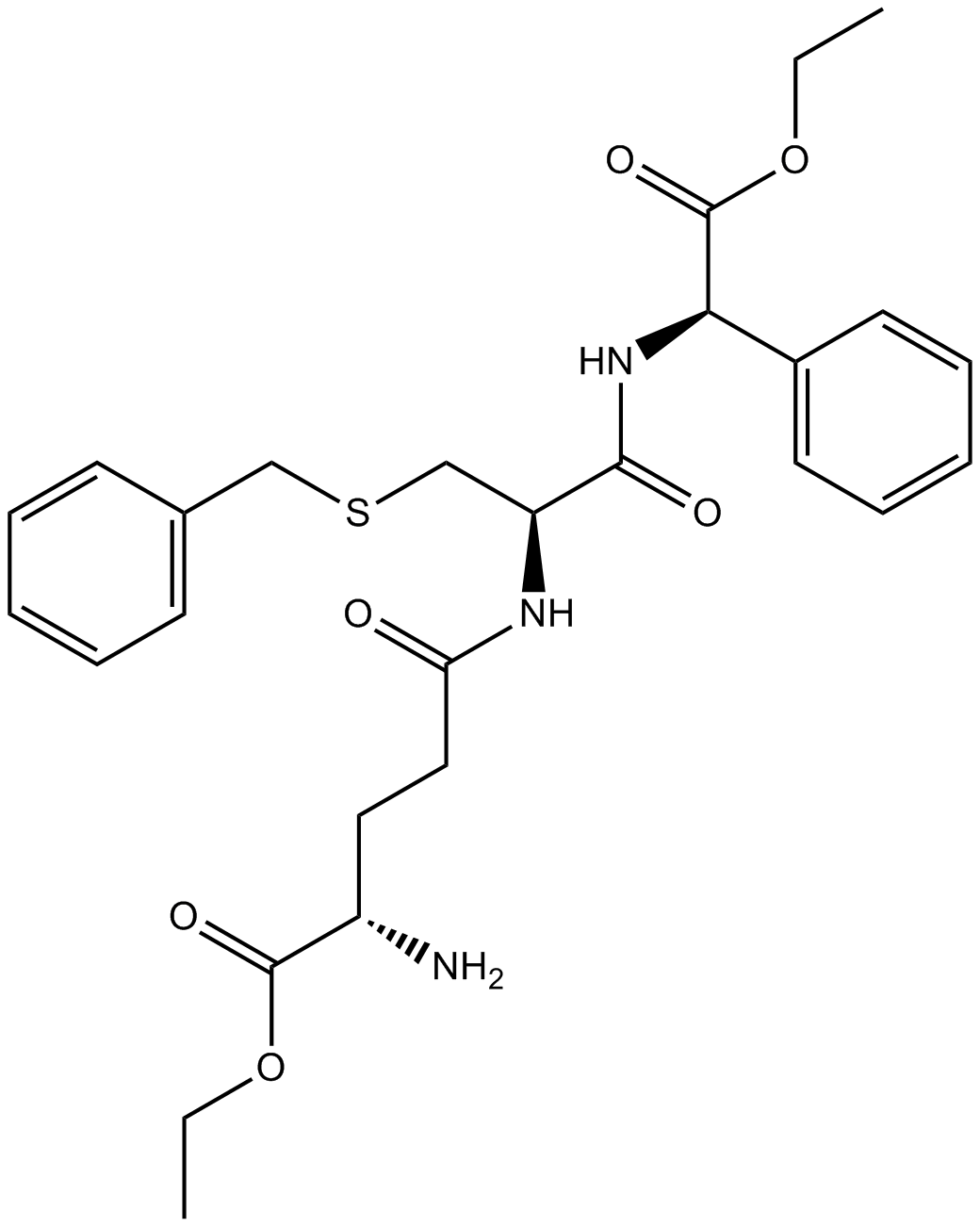 Ezatiostat is a synthetic tripeptide analog of glutathione that inhibits the glutathione S-transferase P1-1 (GSTP1-1) [1]. Ezatiostat is a glutathione analog prodrug that has been shown to stimulate the proliferation of myeloid precursors. Ezatiostat is metabolized to TLK117 which shows selectivity to inhibit and bind to glutathione S-transferase P1-1 (GST P1-1). In addition, ezatiostat could activate the caspase-dependent pathway that help inhibit the emergence of malignant clones and may also contribute to apoptotic death and elimination by increasing reactive oxygen species (ROS) in dysplastic cells. Ezatiostat has shown great stimulatory activity in vitro in human bone marrow progenitor cultures, as well as in several preclinical models of myelopoiesis in vivo. A multidose-escalation study of ezatiostat was performed for the treatment of myelodysplastic syndrome. Patients received 10 dose levels of ezatiostat tablets on days 1 to 7 of a 21-day cycle for a maximum of 8 cycles. Forty-five patients with low to intermediate-2 International Prognostic Scoring System risk myelodysplastic syndrome were enrolled. 17 hematologic improvement (HI) responses by International Working Group criteria were observed at dose range of 200 to 6000 mg/day , wherein 11 HI responses at dose range of 4000 to 6000 mg/day [1]. In randomized multicenter study of 2 extended dosing schedules of oral ezatiostat in low to intermediate-1 risk myelodysplastic syndrome. Patients were randomized by 1 stratification factor-baseline cytopenia to 1 of 2 extended dosing schedules. In general, 11 of 38 (29%) HI-Erythroid (HI-E) response was observed in patients who were red blood cell (RBC) transfusion-dependen. The median duration of HI-E response was 34 weeks. Ezatiostat is proven to cause clinically significant and sustained reduction in RBC transfusions, transfusion independence and multilineage responses in MDS patients [2]. References: [1]. Raza A, Galili N, Smith S, et al. Phase 1 multicenter dose-escalation study of ezatiostat hydrochloride (TLK199 tablets), a novel glutathione analog prodrug, in patients with myelodysplastic syndrome. Blood, 2009, 113(26): 6533-6540. [2]. Raza A, Galili N, Smith SE, et al. A phase 2 randomized multicenter study of 2 extended dosing schedules of oral ezatiostat in low to intermediate-1 risk myelodysplastic syndrome. Cancer, 2012, 118(8): 2138-2147.