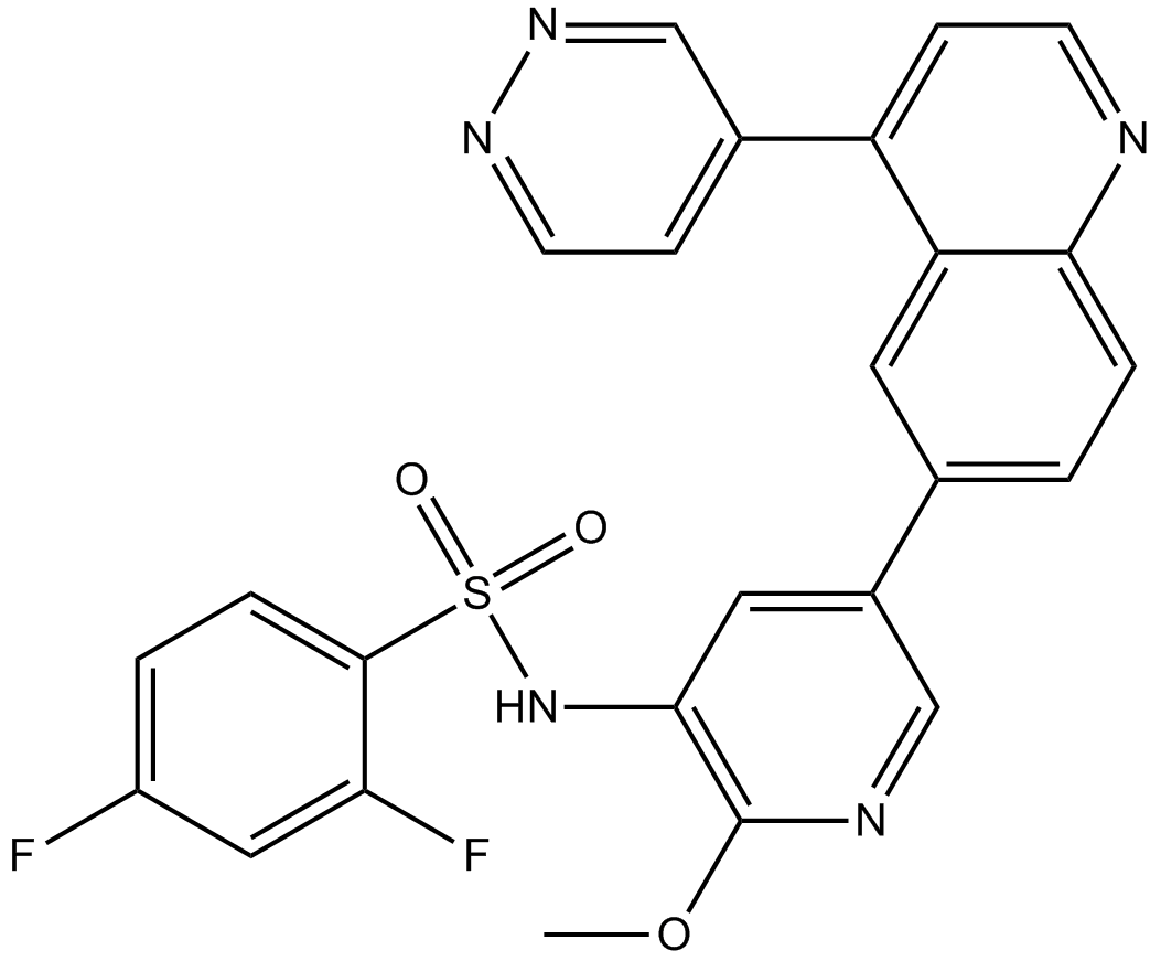 | Chemical Name | 2,4-difluoro-N-[2-methoxy-5-(4-pyridazin-4-ylquinolin-6-yl)pyridin-3-yl]benzenesulfonamide |