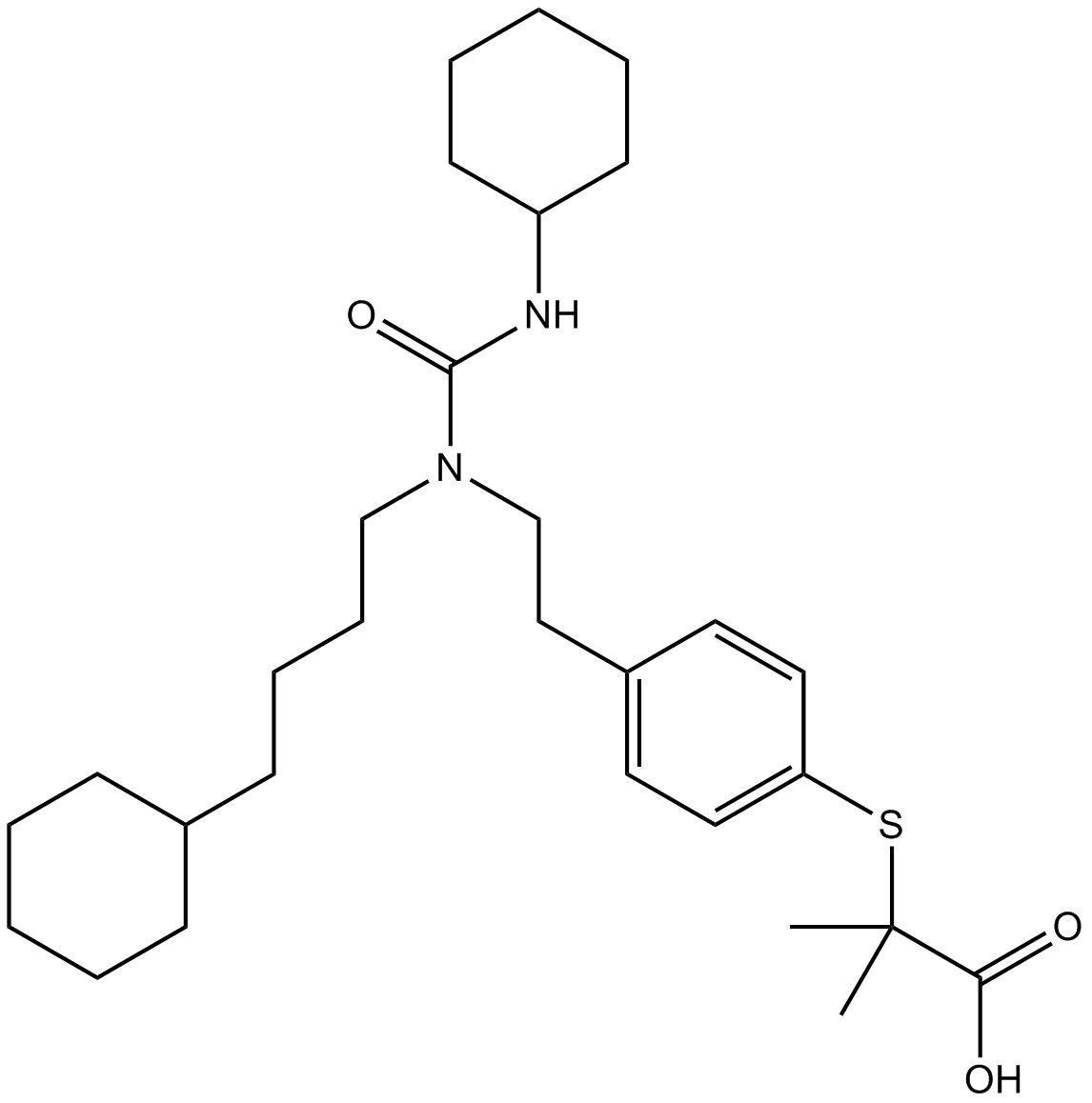 | Chemical Name | 2-((4-(2-(3-cyclohexyl-1-(4-cyclohexylbutyl)ureido)ethyl)phenyl)thio)-2-methylpropanoic acid |