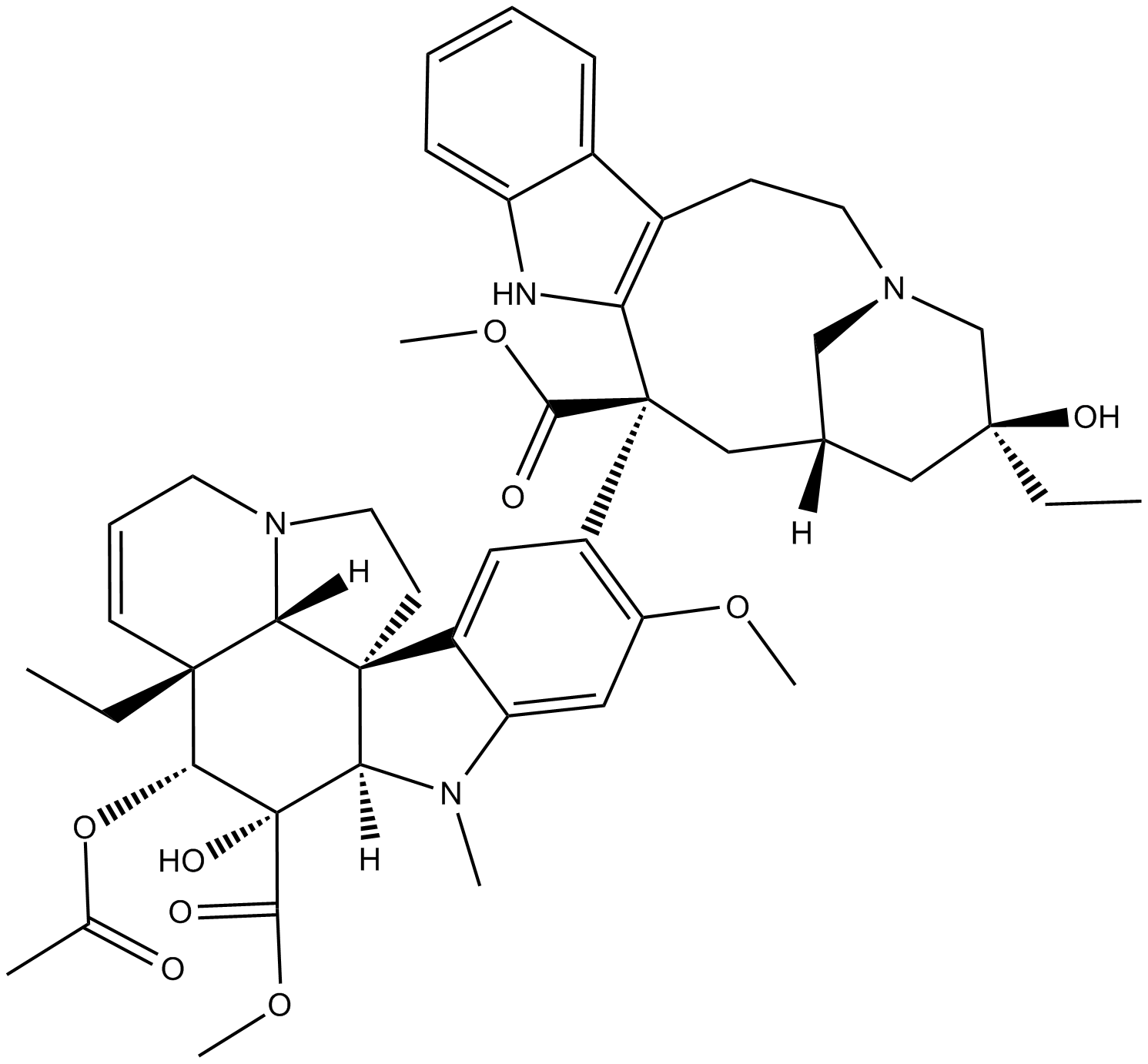 | Canonical SMILES | O[C@@]1(C(OC)=O)[C@]2([H])N(C)C3=CC(OC)=C([C@@](C(NC4=CC=CC=C54)=C5CC[N@@](C6)C7)(C(OC)=O)C[C@@]7([H])C[C@]6(CC)O)C=C3[C@]28[C@@]([C@@](CC)(C=CC9)[C@H]1OC(C)=O)([H])N9CC8 |