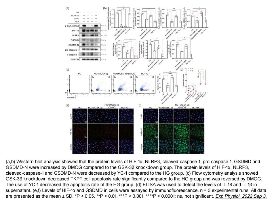 - 1. JiayiWan, Ziming Jiang, et al. "Inhibition of GSK‐3β/HIF‐1α pathway alleviates NLRP3‐mediated pyroptosis induced by high glucose in renal tubular epithelial cells." Exp Physiol. 2022 Dec;107(12):1493-1506. PMID: 36056793